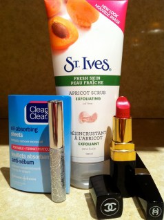 5 more favourites: Clean & Clear Oil-Absorbing Sheets, St. Ives Gentle Exfoliating Apricot Scrub, Chanel Imitable Intense Mascara in “Black”, Chanel Rouge Coco Lipstick in “Cambon” and Clinique Bottom Lash Mascara.