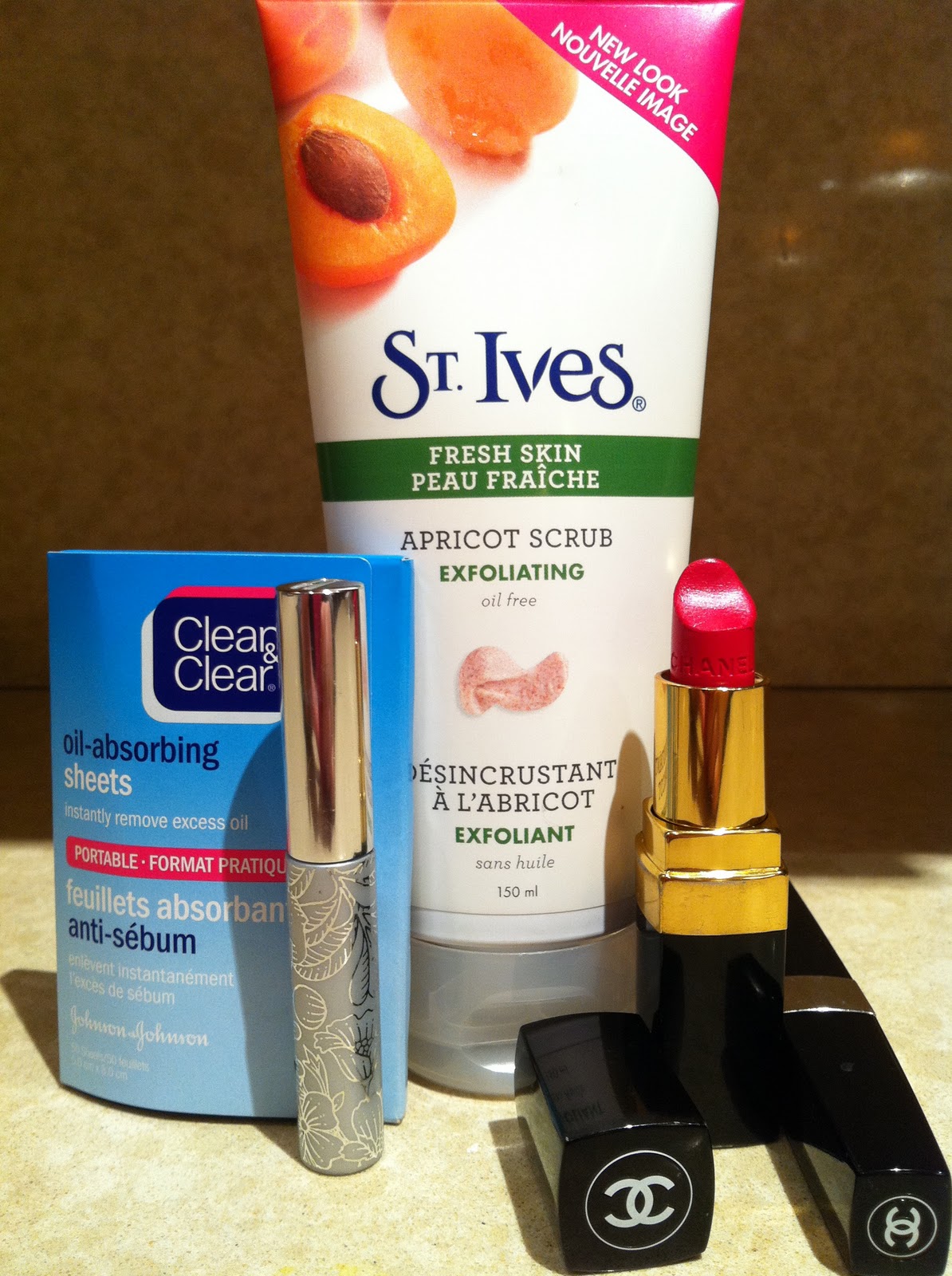 5 more favourites: Clean & Clear Oil-Absorbing Sheets, St. Ives Gentle Exfoliating Apricot Scrub, Chanel Imitable Intense Mascara in “Black”, Chanel Rouge Coco Lipstick in “Cambon” and Clinique Bottom Lash Mascara.